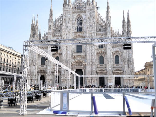 ミラノ大聖堂広場には特設の会場が設けられていました。今回はミラノとドロミテにて開催とのことですが、イメージとしては室内のものはミラノ、スキーなど野外のものは山間部のドロミテ辺りで行われるようです。実際に私が移住してきた20年前ぐらいはミラノでも冬には積雪がありましたが、温暖化の影響かここ6,7年ほどはミラノではほとんど積雪はなくなってしまいました。